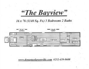 The Bayview – 16 x 76 – 1140 Sq. Ft. – 3 Br 2 Bath
