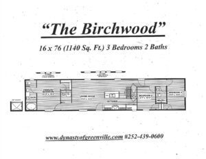 The Birchwood – 16 x 76 – 1140 Sq. Ft. – 3 Br 2 Bath