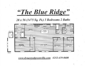 The Blue Ridge – 28 x 56 – 1475 Sq. Ft – 3 Br 2 Bath